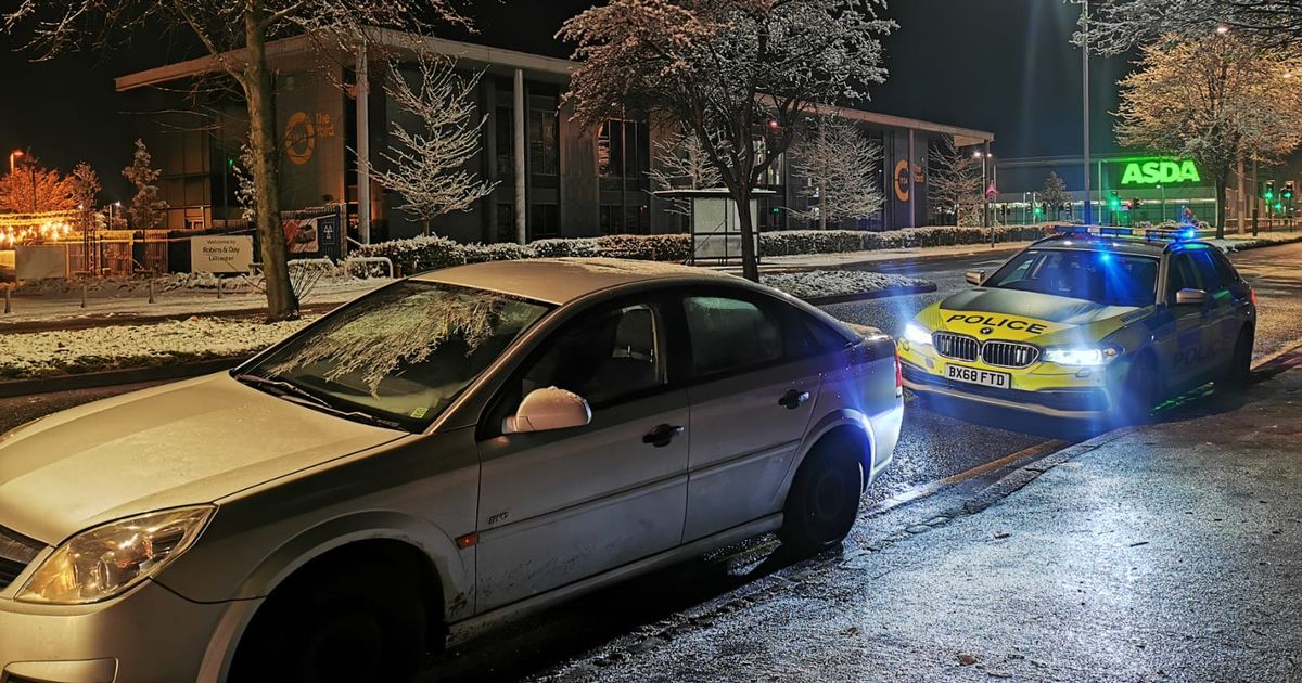 The driver, whom police found wearing shorts in wintry weather, was stopped in the Exploration Drive area of Leicester and had no insurance or supervision while behind the wheel.